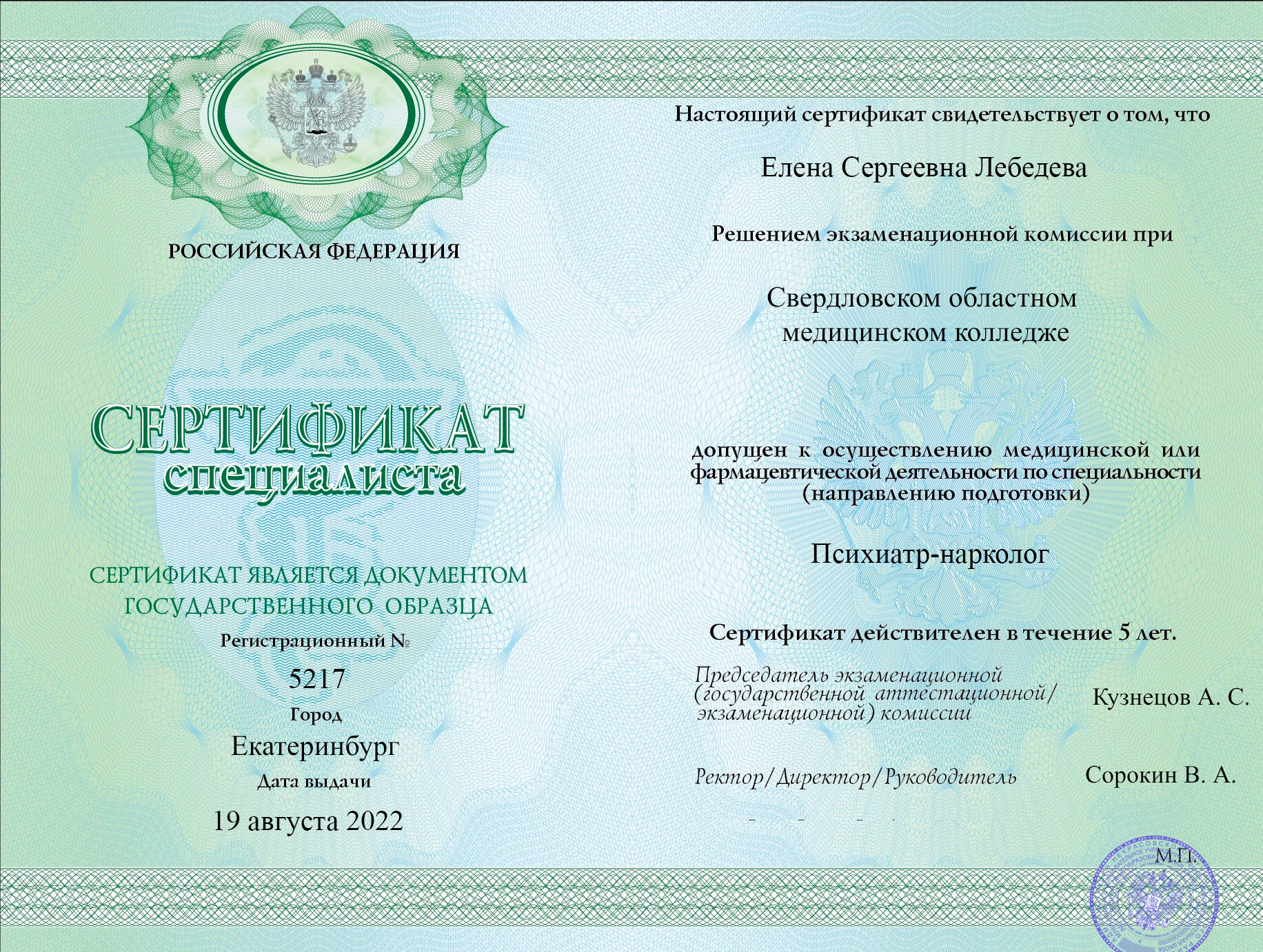 Елена Сергеевна Лебедева врач нарколог клиники доктора Стукаловой в Надыме